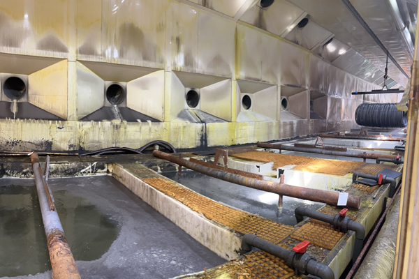 答:酸洗:將整個(gè)盤元分別浸入常溫、濃度為20-25%的三個(gè)鹽酸槽數(shù)分鐘,其目的是除去線材表面的氧化膜。